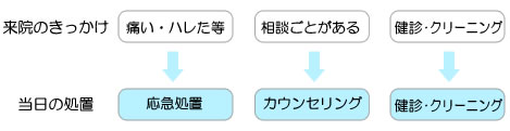 まずは患者様のご要望をお聞きし、どのような治療法があるかご説明いたします。